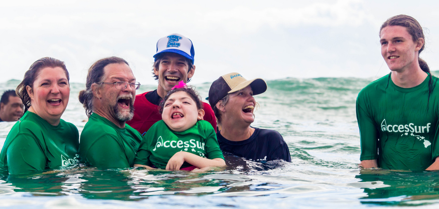 The overwhelming emotion of love watching our daughter swim AND surf with AccesSurf is a dream come true for our family here and at home. We will never forget this awesome experience. AccesSurf made us feel like family. We felt so safe and comfortable even though these were people we had just met. There were not any more concerns seeing how it was all done and that she was in good hands. Shayne deserves this chance to do the things that other people do. Next on the list is tobogganing! Thank you Make A Wish and AccesSurf for showing us love and compassion but also giving us a chance to see our potential and that we can overcome what we always thought were boundaries.
