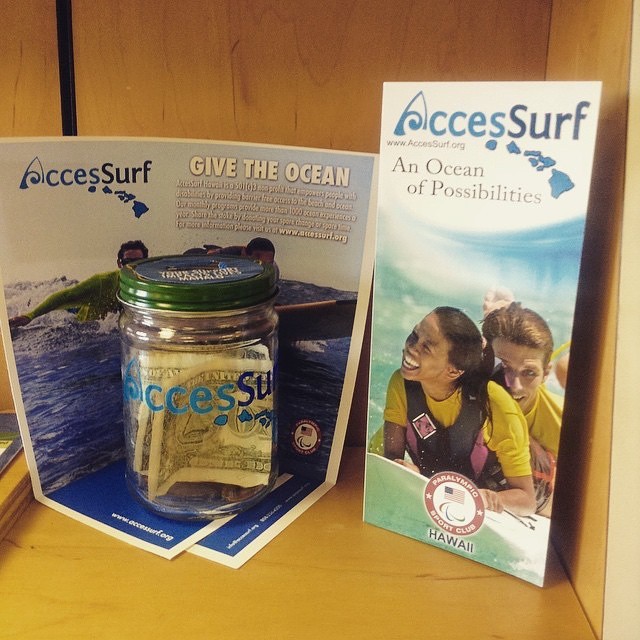 Around the island you will see many businesses supporting AccesSurf with our canister campaign!