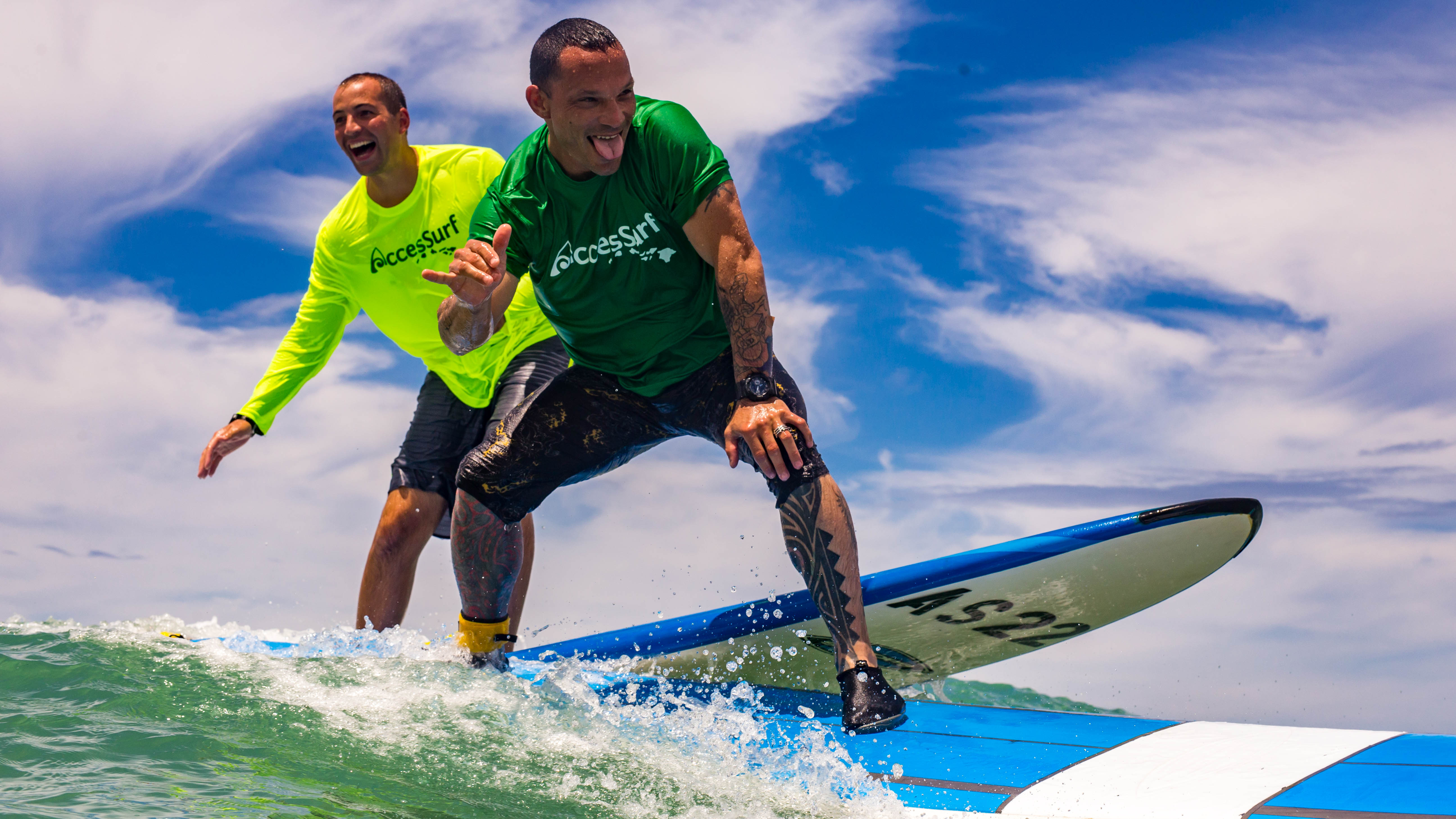 New volunteers can fill out their waiver form below. You only need to fill out this form once. Volunteers are encouraged to show up beach ready (board shorts / swimsuit – AccesSurf provides rash guards). If you are a first time volunteer, we will hold an orientation circle at 0930.