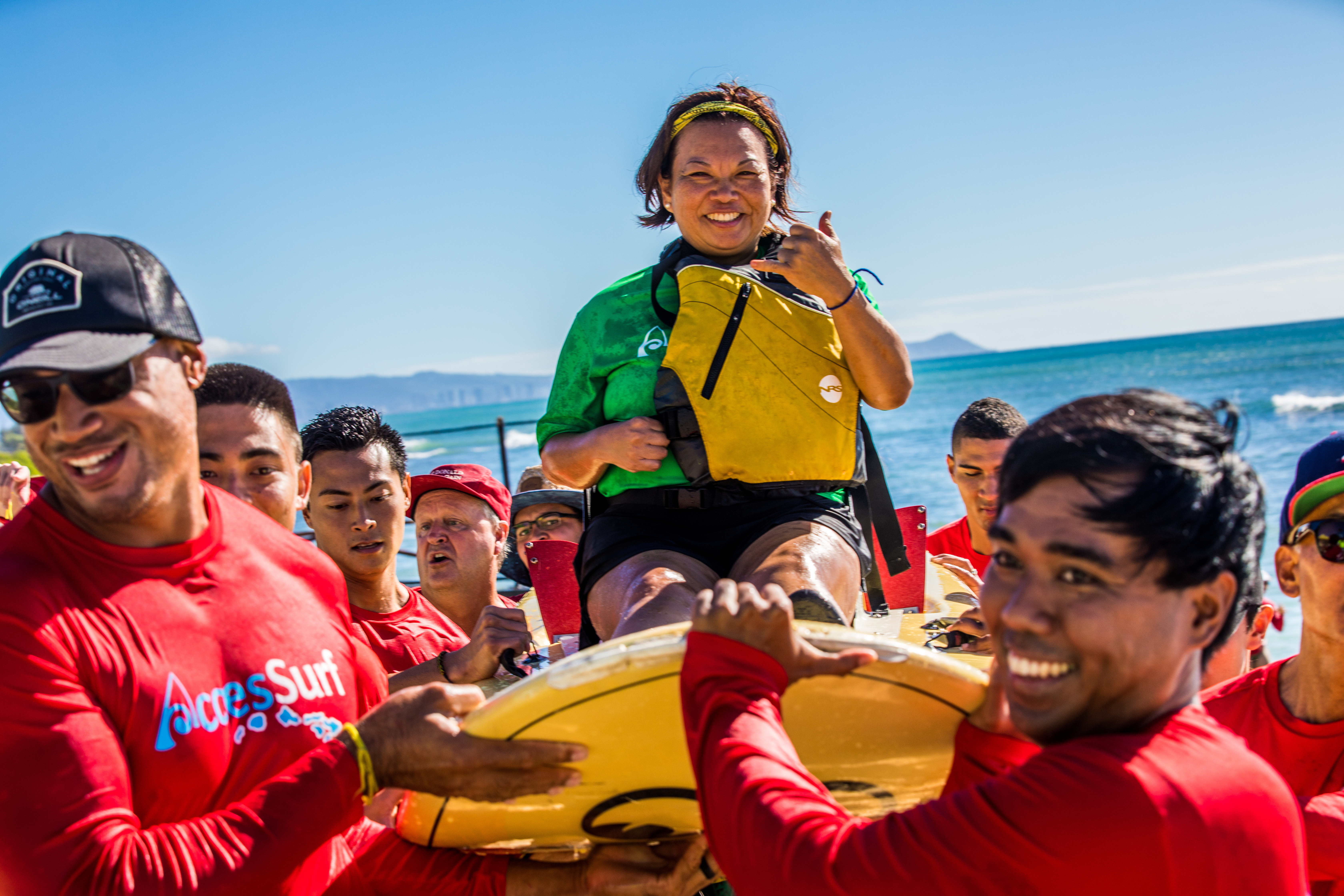 Join us at ‘Day at the Beach,’ our free monthly program for our kama’aina and visitors to the islands. Our trained volunteers provide adaptive surfing, flotation, and swimming for any person with a disability on the first Saturday of each month at White Plains Beach Park from 9 a.m. to 1 p.m (there are a few exceptions through out the year, please check our events calendar for any date and location changes).