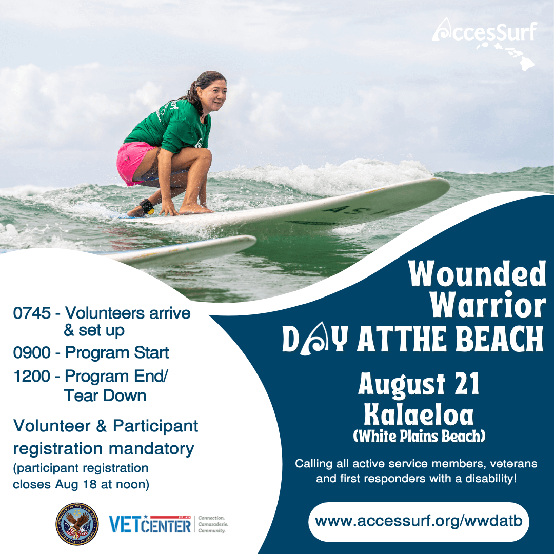 August 20 @ 7:30 am - 1:00 pm 2025 August Wounded Warrior White Plains Beach White Plains Beach, Ewa Beach, HI, United States Wounded Warrior