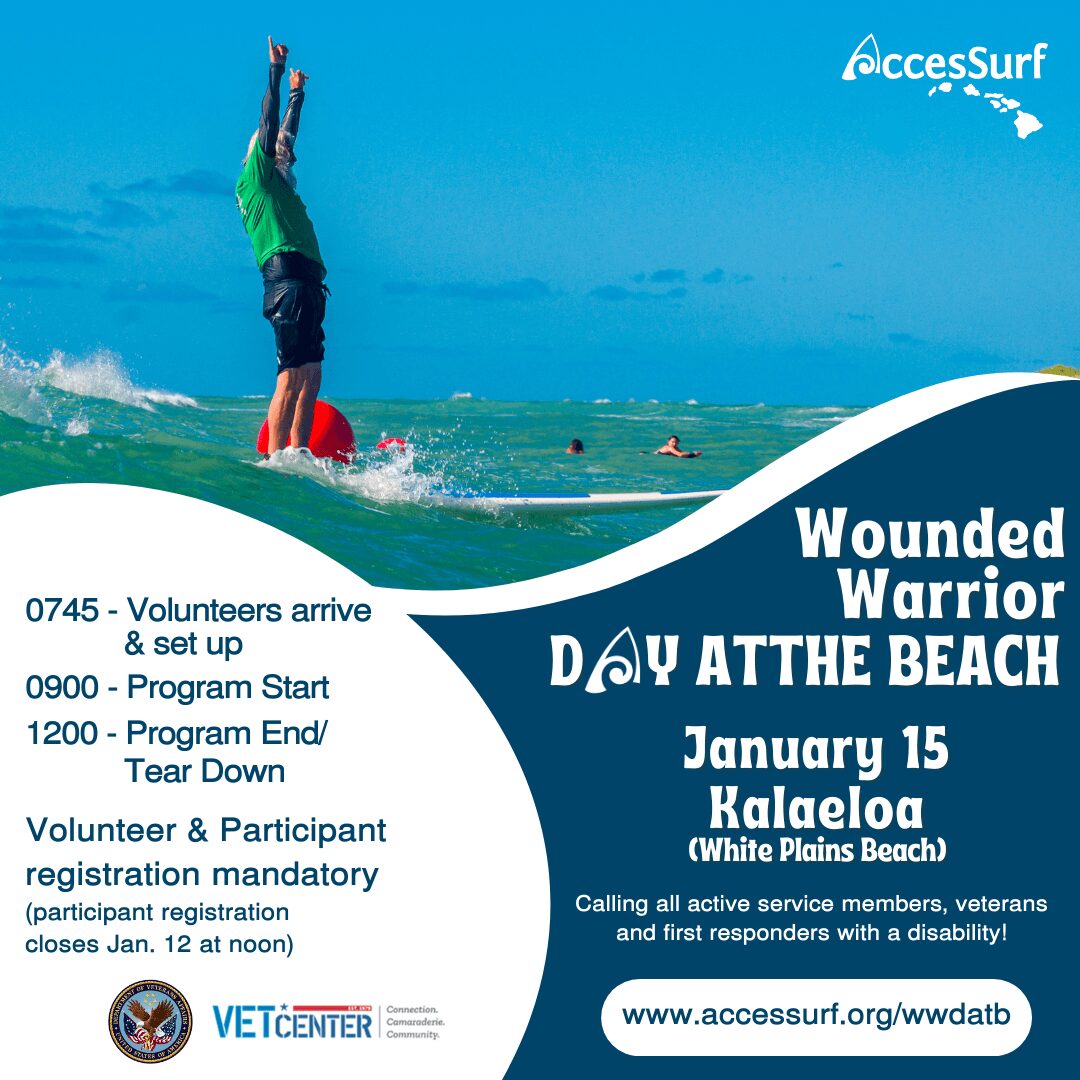 January 15 @ 7:30 am - 1:00 pm 2025 January Wounded Warrior White Plains Beach White Plains Beach, Ewa Beach, HI, United States Wounded Warrior