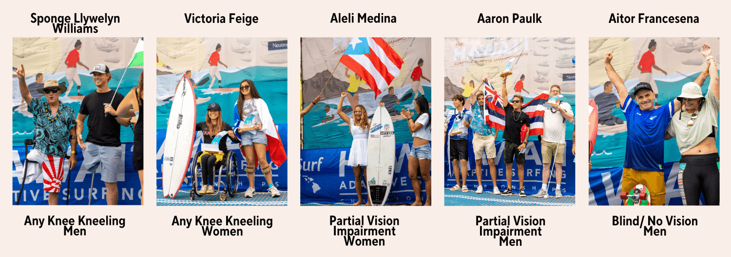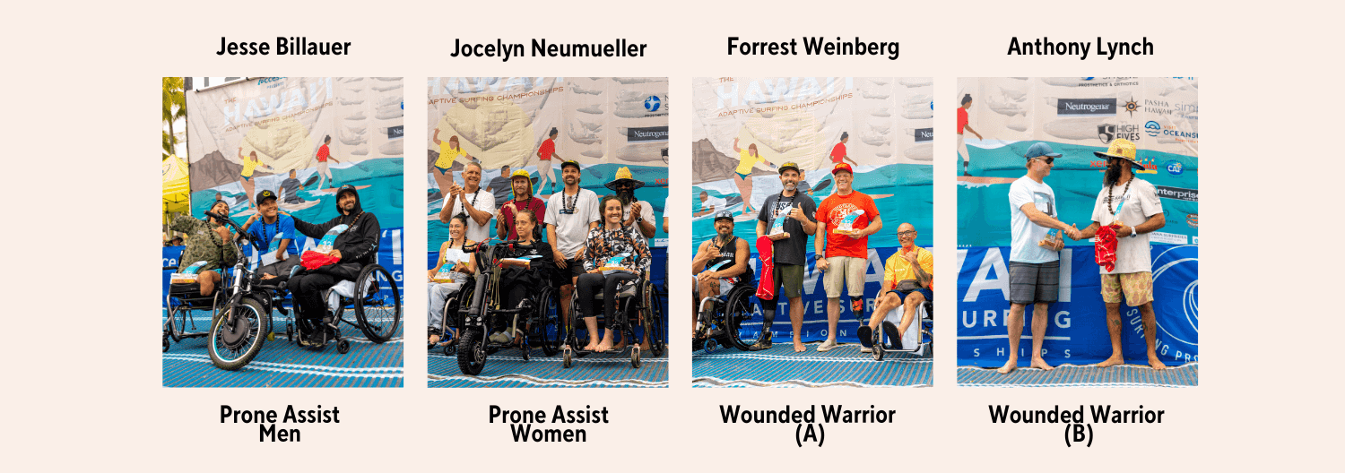 | Prone Assist - Men | Jose Martinez | Jesse Billauer | Eric Lazar | Tomoki Fujiwara | Claudio Morales | Buster Kawasaki | Scott Davis | Shay Eastham | Christopher Waker | Mathius Vanderhoogth | Bailey Van Den Hooven | Jon Price | Corey Obungen |