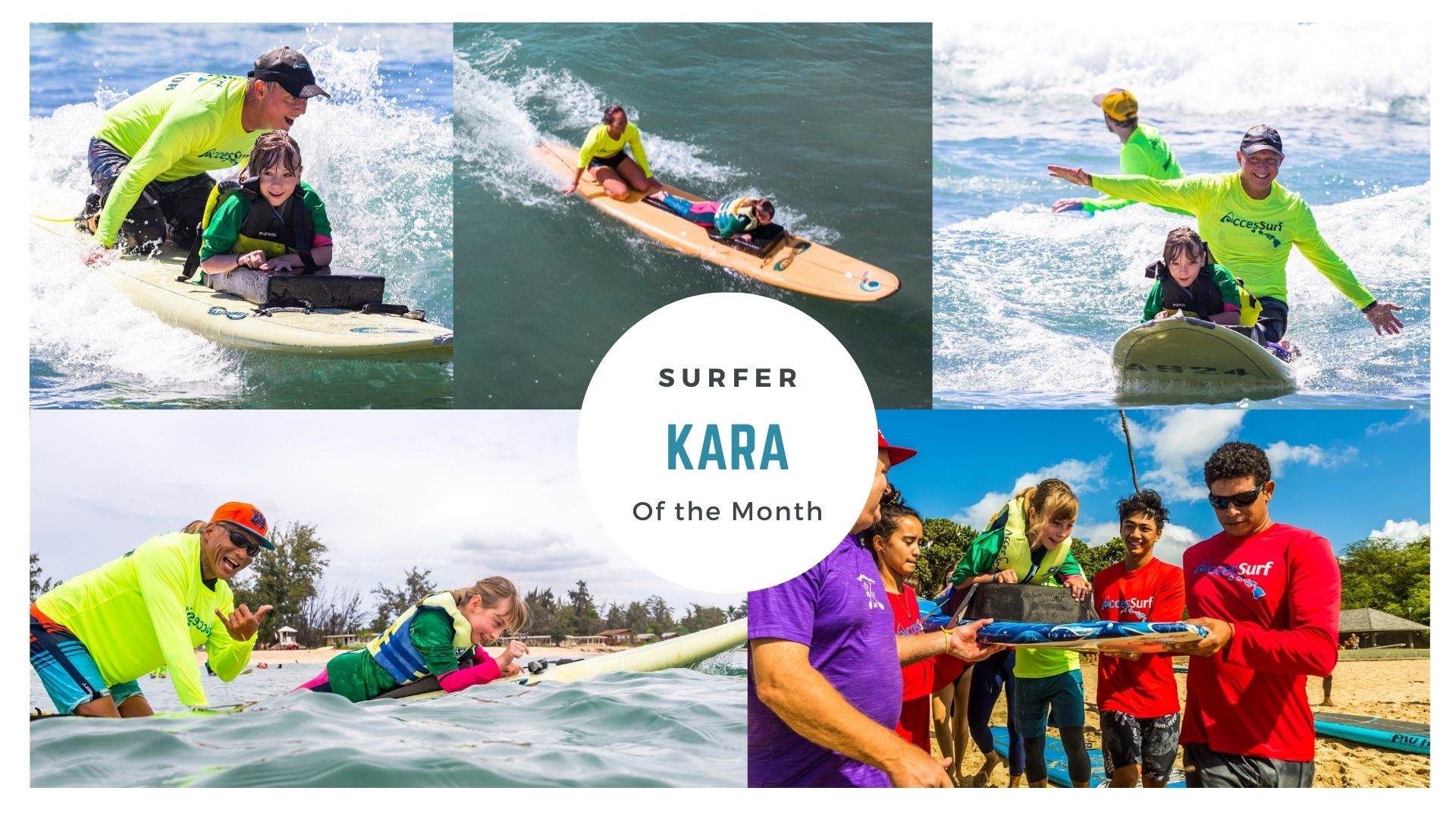 If you’ve been to a Day at the Beach then you have had the pleasure of seeing Kara surfing. Kara’s smile and joy on the water is so contagious her photo is on the side of our new equipment van! We are so blessed to have her and her family be a part of our ‘ohana and to be able to watch our keiki grow into the future of AccesSurf.