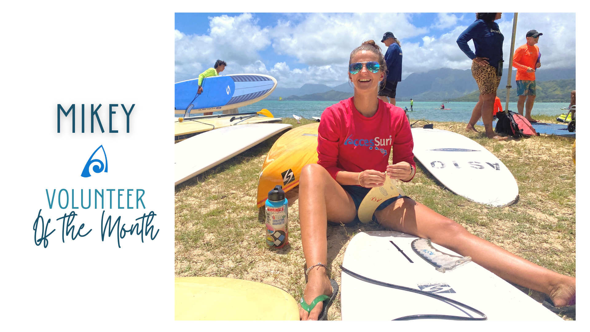 Mikey has been an incredible volunteer and has jumped in full speed ahead anywhere and everywhere we needed her. She was a tremendous help during our Hawai’i Adaptive Surfing Championships from set up to tear down and we honestly don’t know what we would have done without her! Welcome to the crazy AccesSurf ‘ohana!