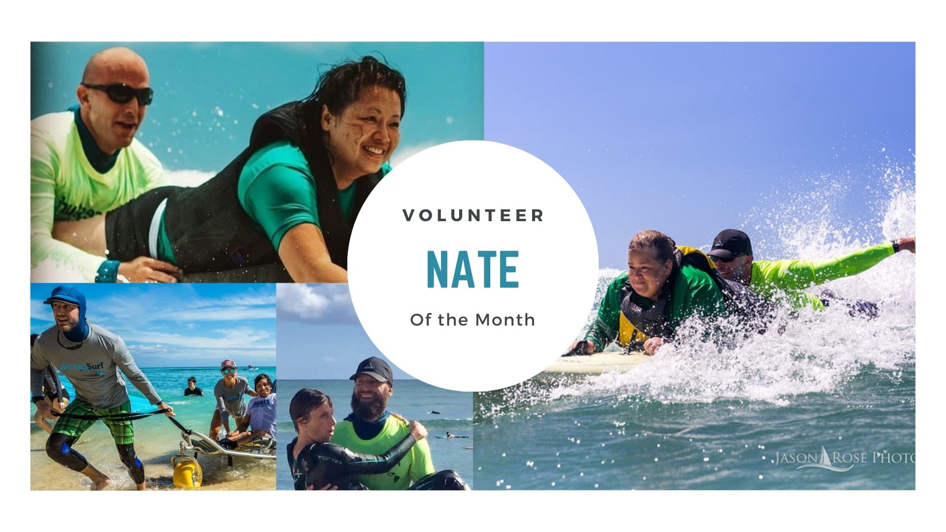 Our volunteer of the month for March has been a very big part of AccesSurf for many years and has played several roles along the way. From water safety, surf instructor, transfers, set up, tear down, Leadership Committee and many years ago he was a pivotal supporter as an advisor helping the organization stay on track through transition and continue to grow. Nate is known to always be there when we need him, responding YES to the last minute DATB phone calls from Cara... .. 'Are you coming?' and all of the 'Can you go out one more time?' questions at programs. His compassion for people and his love of sharing his passion of the ocean has impacted so many! Thank you, Nate for all that you do. Now, a few words from the man himself...
