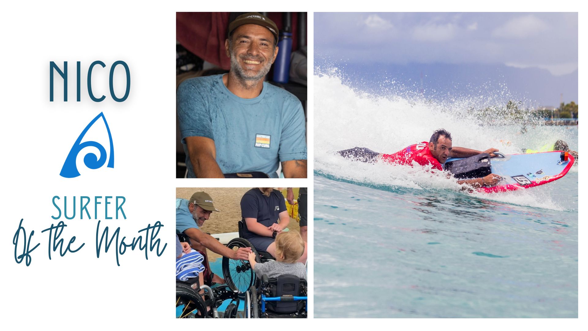Meet Nico Gallegos, prone surfer from Argentina and long time friend. We LOVE having him in Hawai’i every year for the Hawai’i Adaptive Surfing Championship as he brings great vibes and big smiles all the way from Argentina! He is the 2022 World Champion in the unassisted prone division and continues to surf and shred his way around the world!