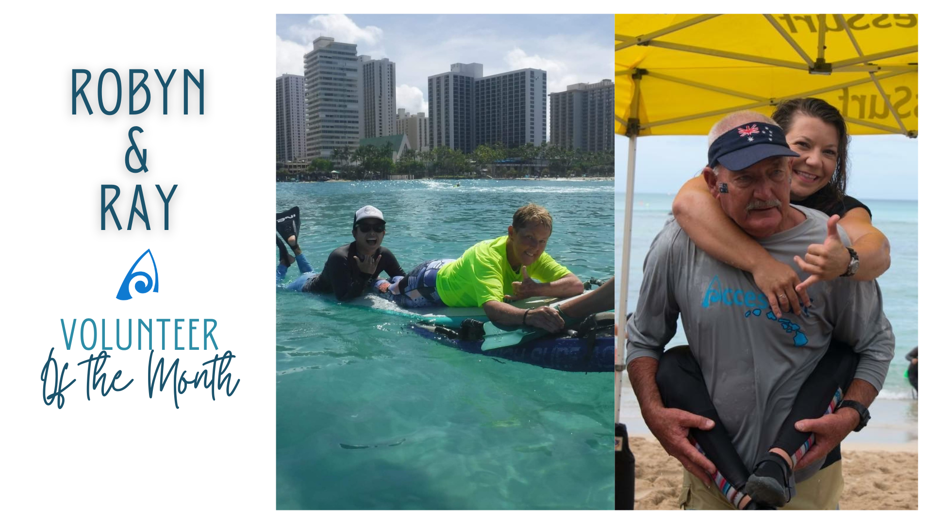 Robyn and Ray has been a part of our Adaptive Surfing ‘ohana for many years. Robyn surfs in the Hawai’i Adaptive Surfing Championships and even volunteers where she can. Her kind soul expands from the beaches of NSW all the way to Hawai’i and we absolutely adore her. Ray is an incredibly hard working volunteer. You may have seen him frequent the water transfer area but he is always so willing to help anywhere and everywhere. Even when we are running around with our heads chopped off trying to run the contest, Ray seems to be the calm in the midst of the storm. Sorry Ray, can’t cure crazy but thank you for sticking with us! We love you two so much and are so thankful for your dedication to AccesSurf and Adaptive Surfing. Mahalo!