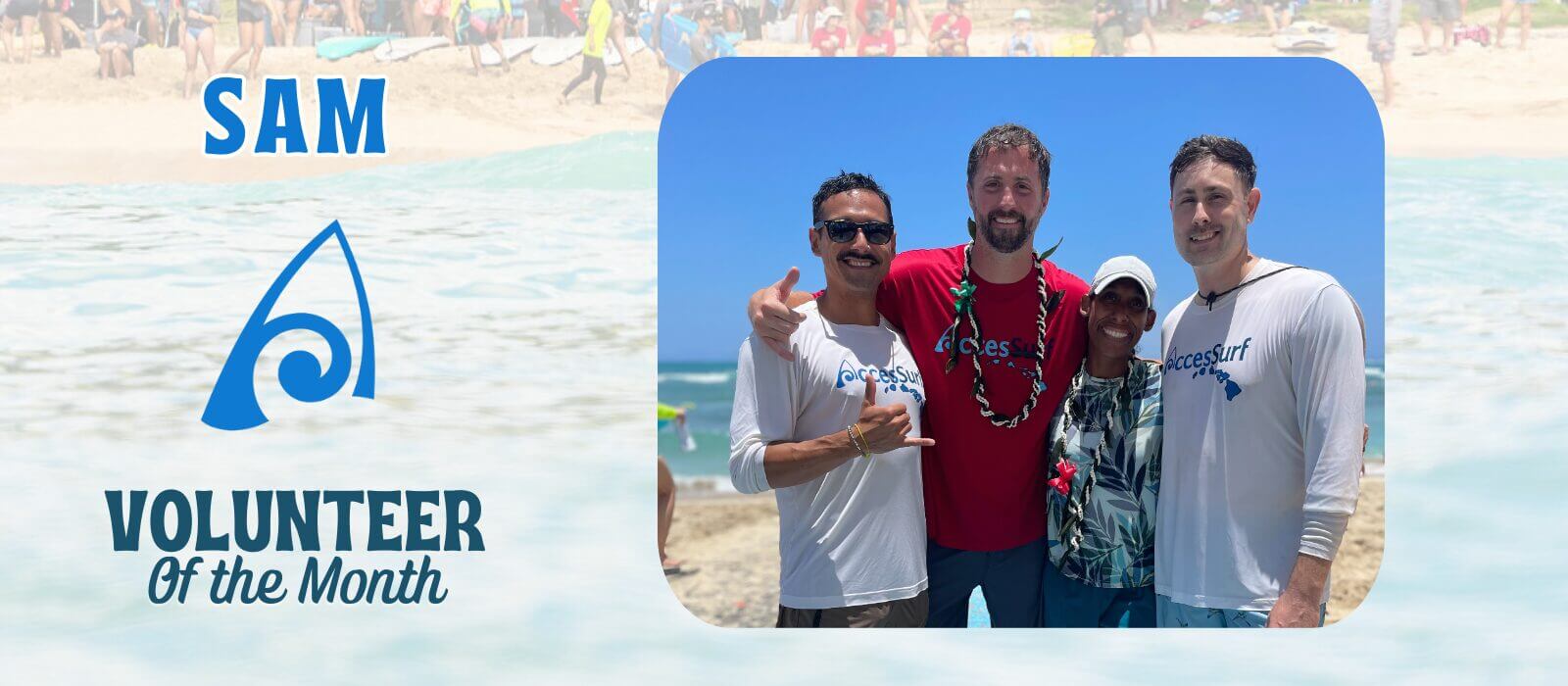 I heard about AccessSurf via Angie’s awesome volunteer presentation at my work. AccessSurf combines two of my favorite things, being outside in nature and also volunteering. I’ve found routinely volunteering to be very rewarding where ever I live and the fastest way to meet the best people. Most volunteering days I feel I receive more benefits from volunteering than my efforts deserve.