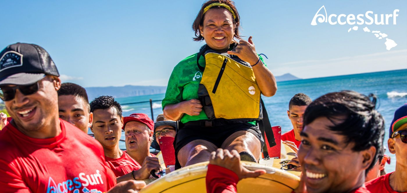 Q: What is your favorite part of AccesSurf?A: AccesSurf volunteers, community volunteers, and participants. To see unlimited possibilities whether your a stroke, wheelchair, amputee, or polio survivors, you can do it! Just being at the beach and surfing is wonderful. Waveski! My goal this year is to ride the waveski on my own.