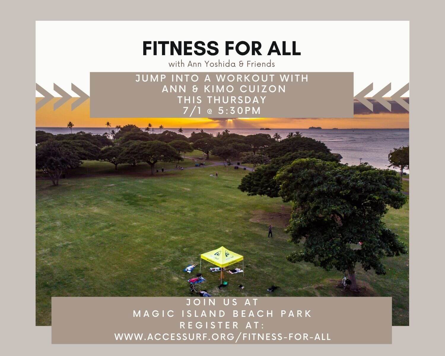 July 1, 2021 @ 5:30 pm - 6:30 pm Fitness For All Ala Moana Regional Park Magic Island Fundraising Event