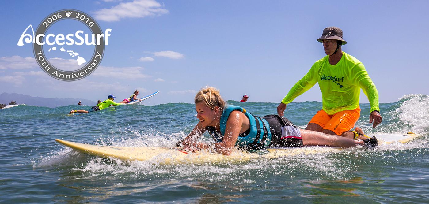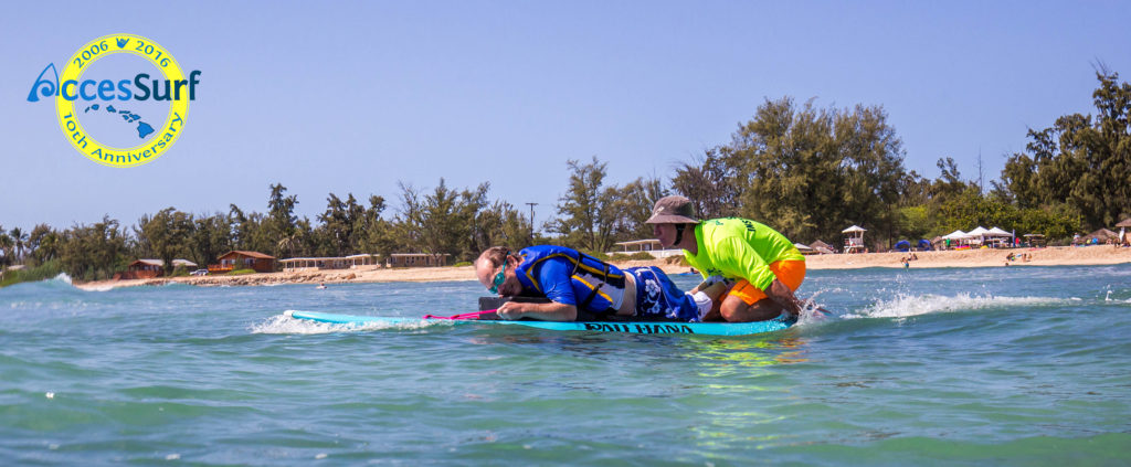 I love the ocean; it is hard for me to imagine not being able to just jump in the water whenever I want. I owe my participation in Accesssurf to my wife Bridget, and Charlie! Bridget was Charlie’s nurse and she was always looking for ways to get him out and about. Two years ago Bridget came home from Accessurf with a perma-smile on her face; she said she had her best day of surfing ever, and she didn’t even surf! I promised myself I would go the next time I was off duty on the first Saturday of the month. I did get to surf that first day I volunteered – I took Charlie and a few other people out surfing. It was the best day ever!I surf for myself whenever I want; and I always try to have the “best day ever”. None of those days can compare….At the May Day at the Beach I took a 7 year old birthday girl surfing – we decided 7 waves would be a good goal. I will never forget the smile on her face and in her eyes when her mom asked her if she had fun. I get all choked up and teary eyed whenever I see that smile in my mind. I think I get as much out of AccesSurf as the participants do! Big Mahalo to all the volunteers that make AccesSurf possible!Aloha,Bruce