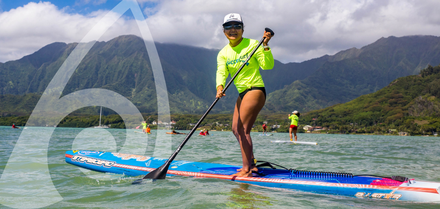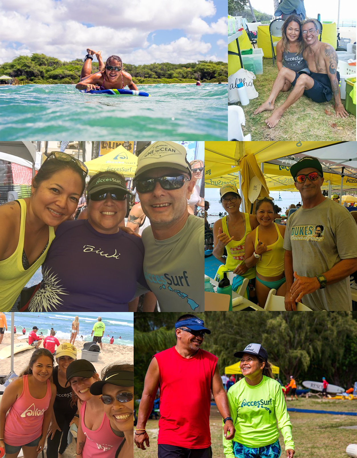 What a difference a year makes! My first Accessurf experience was in August 2016 when I came to the annual Kualoa Day at the Beach with my friend Mark Matheson. He introduced me to Cara, Candy, and a few other folks. I was in awe at the joy and happiness that radiated out of folks…participants and volunteers alike. I started volunteering a couple months later and haven’t stopped because I’m totally addicted to the heartfelt joy that I feel when I’m in the thick of any Accessurf event. Not only that, but being near, and in the water is so healing. Ocean therapy is free and fantastic! Speaking of the water, folks often approach me in the equipment tent and playfully rib me saying, “When are you getting in the water?” My watersport is stand up paddling, for distance and downwinding, but I’ve been venturing into surfing, albeit very slowly. Thanks for your patience Buster! Jason Rose’s awesome photography skills have captured me on the water a couple times. A “Lynette sighting” on the water at DATB may be rare, but there is no doubt that I LOVE being at any Accessurf event, so those sightings are immensely frequent. Thank you Accessurf and Mark, from the bottom of my heart! I’ve made new friends, experienced new water activities, and leave each event with a heart overflowing with joy and happiness!