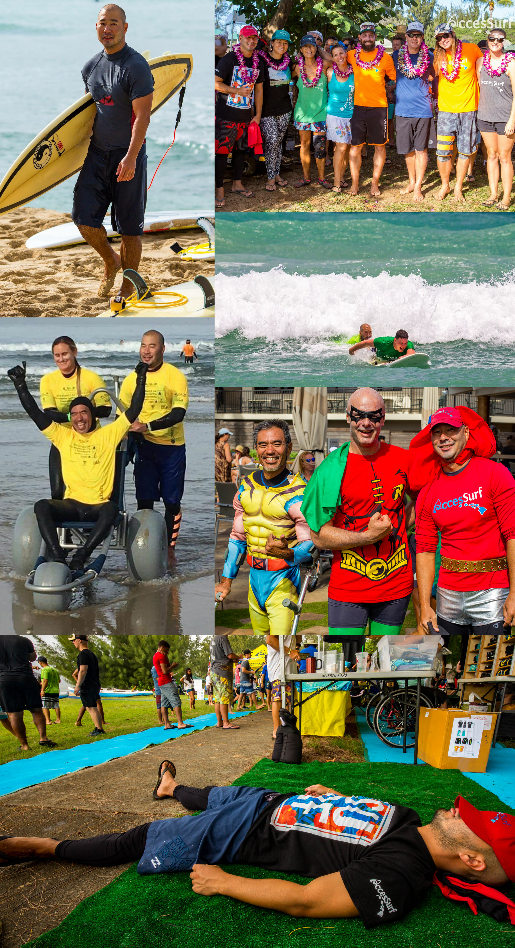 I first heard about adaptive surfing after watching the surf documentary “Step into Liquid.” But I’m still unsure how I heard about AccesSurf. It was most likely when a bunch of adaptive surfboards were stolen and AccesSurf was featured on the local news. But it wasn’t for several months after, that I forced myself to wake up at dawn to attend the first time volunteers orientation at the April 2015 Day at the Beach. I’m pretty lazy, so driving from town to white plains at 7 o’clock in the morning was a pretty big commitment. I honestly wanted to just be a bystander and feel the vibe that first time. But Jim Russell put me to work. I’ve been on water safety ever since. I wasn’t that invested until I became Facebook friends with Buster Kawasaki, who is friends with EVERYONE. That opened the floodgates and I started volunteering at Wounded Warrior events and with the Hawaii Adaptive Surf Team. Now I’m a part of the Accessurf leadership committee and Team Bustahmove within the adaptive surf team. Both of which I’m extremely grateful and honored to be a part of. I’ve made so many friends through AccesSurf, that I don’t feel like I’m volunteering my time, I’m just surfing with my friends.