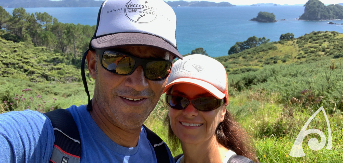 Well this month we get to not only celebrate one of our favorite people – but TWO of our favorite people as volunteers of the month. Conrad and Paola Leslie have been volunteering with AccesSurf since just after they moved to Hawaii a couple years ago, but it feels like they have ALWAYS been a part of our family.