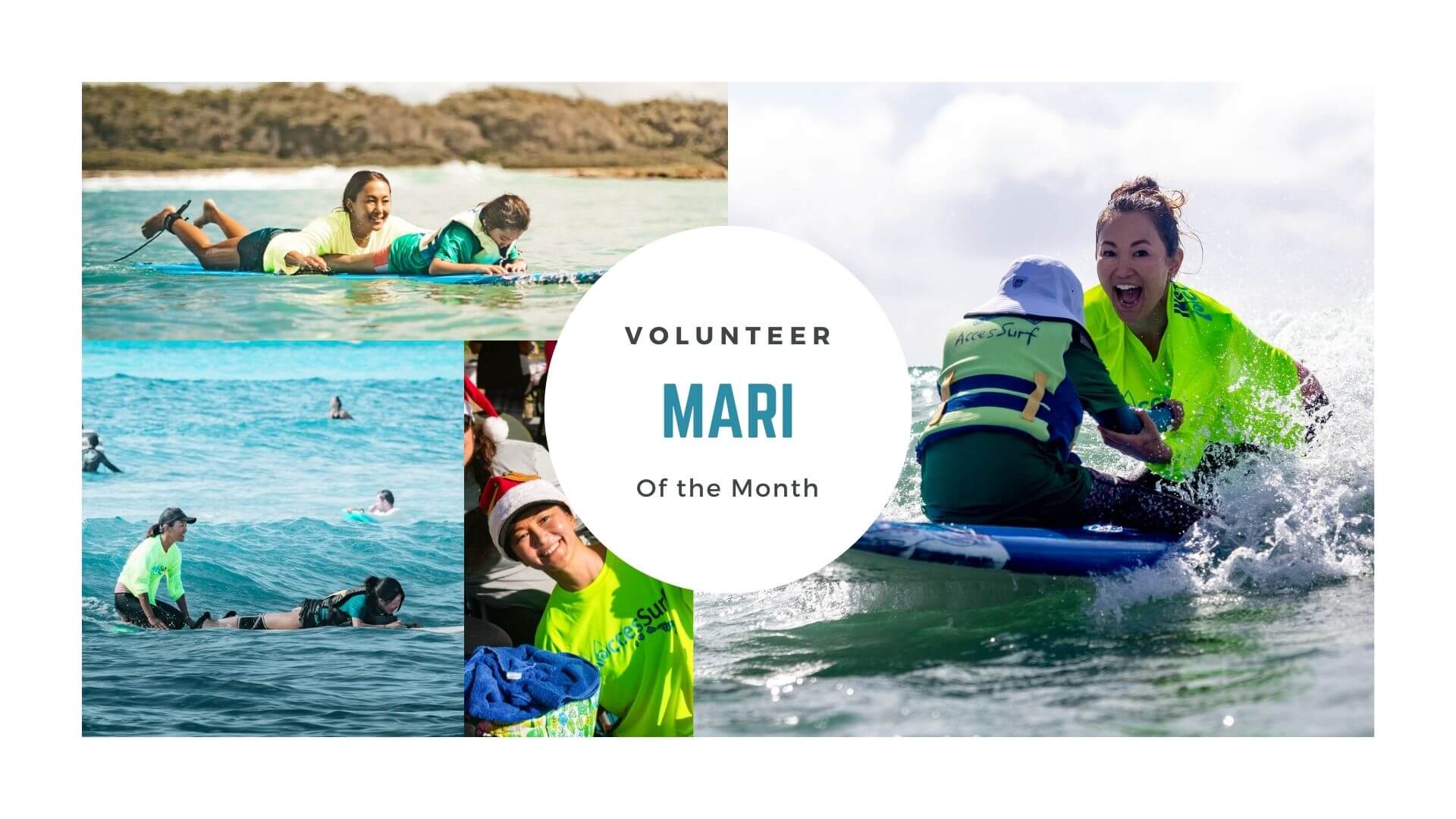 I think the first time I joined AccesSurf was in 2015. I always wanted to volunteer and give back to community but didn’t know where to start, but my friend told me about AccesSurf where you get to assist people who also love surfing, so I thought.. perfect! I remember showing up to the first event by myself not knowing what to expect, but people were very friendly and I made a lot of friends immediately. Everybody had positive and humble souls where I could relate and felt very comfortable. I started coming to events when I could and fell in love with surfing with participants, making new friends, and sharing the same passion with people from different backgrounds.